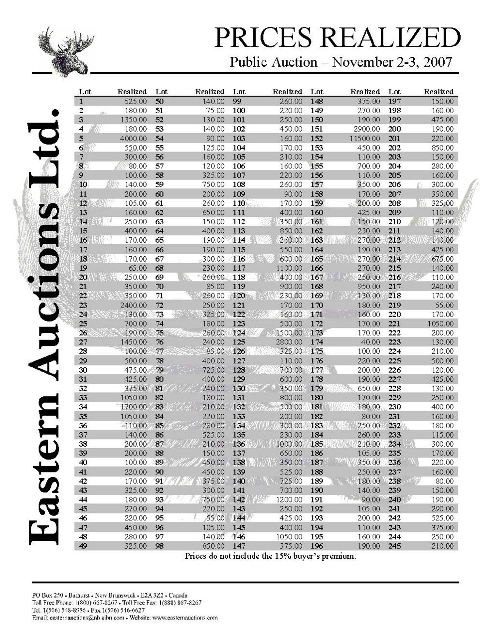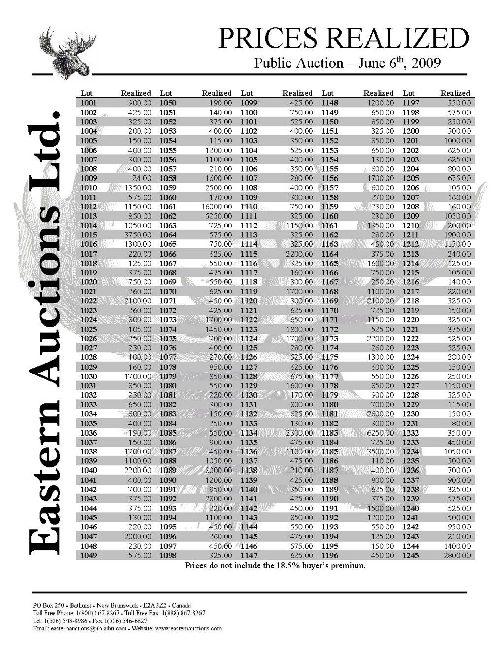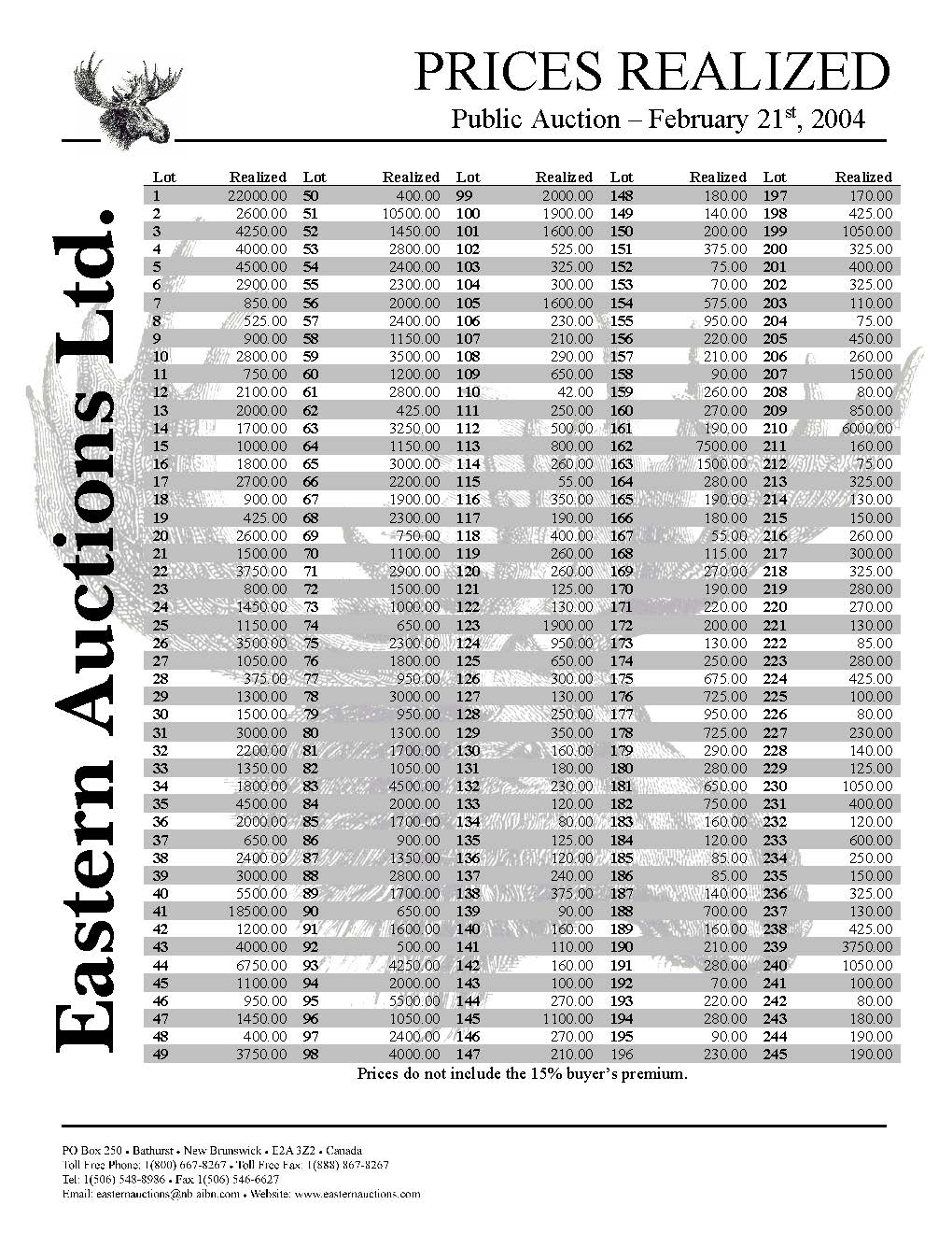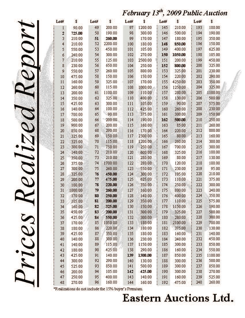 Prices Realized Report