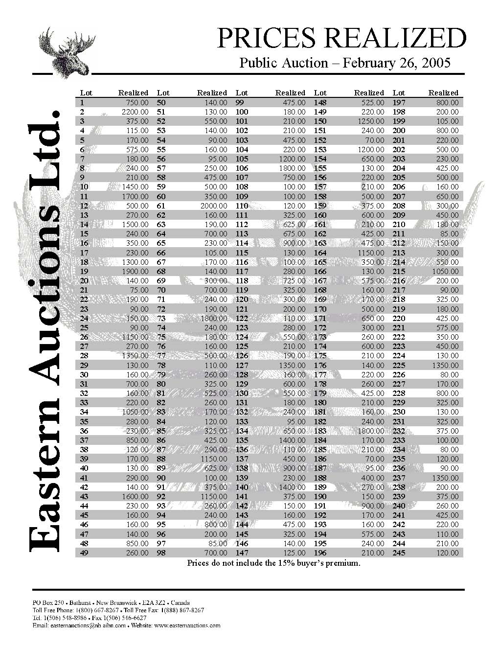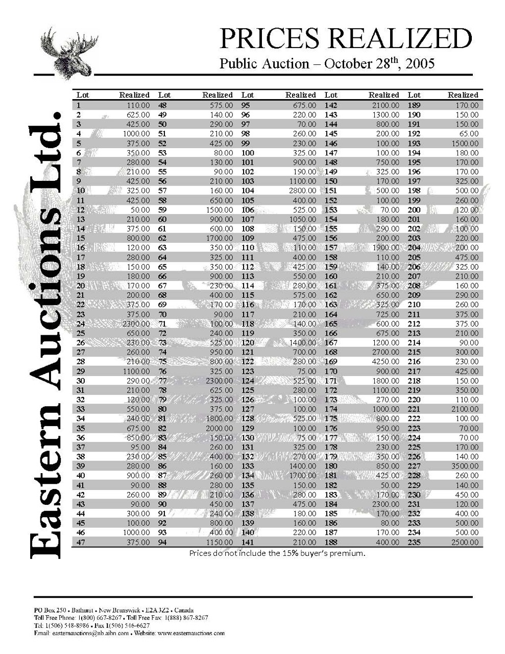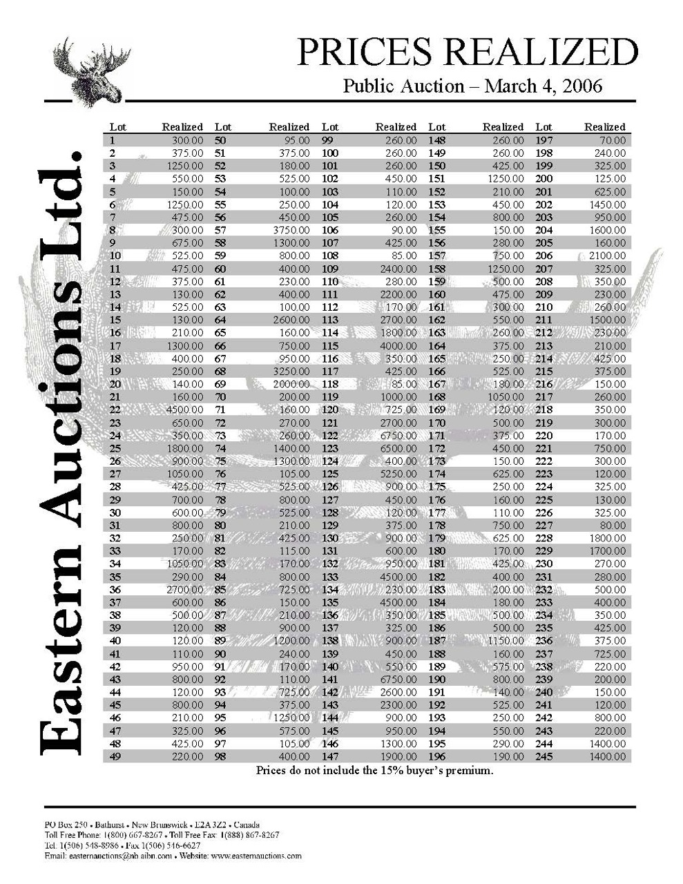 Prices Realized Report