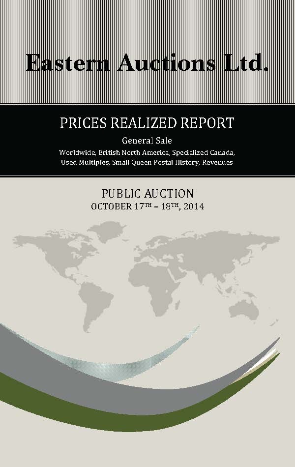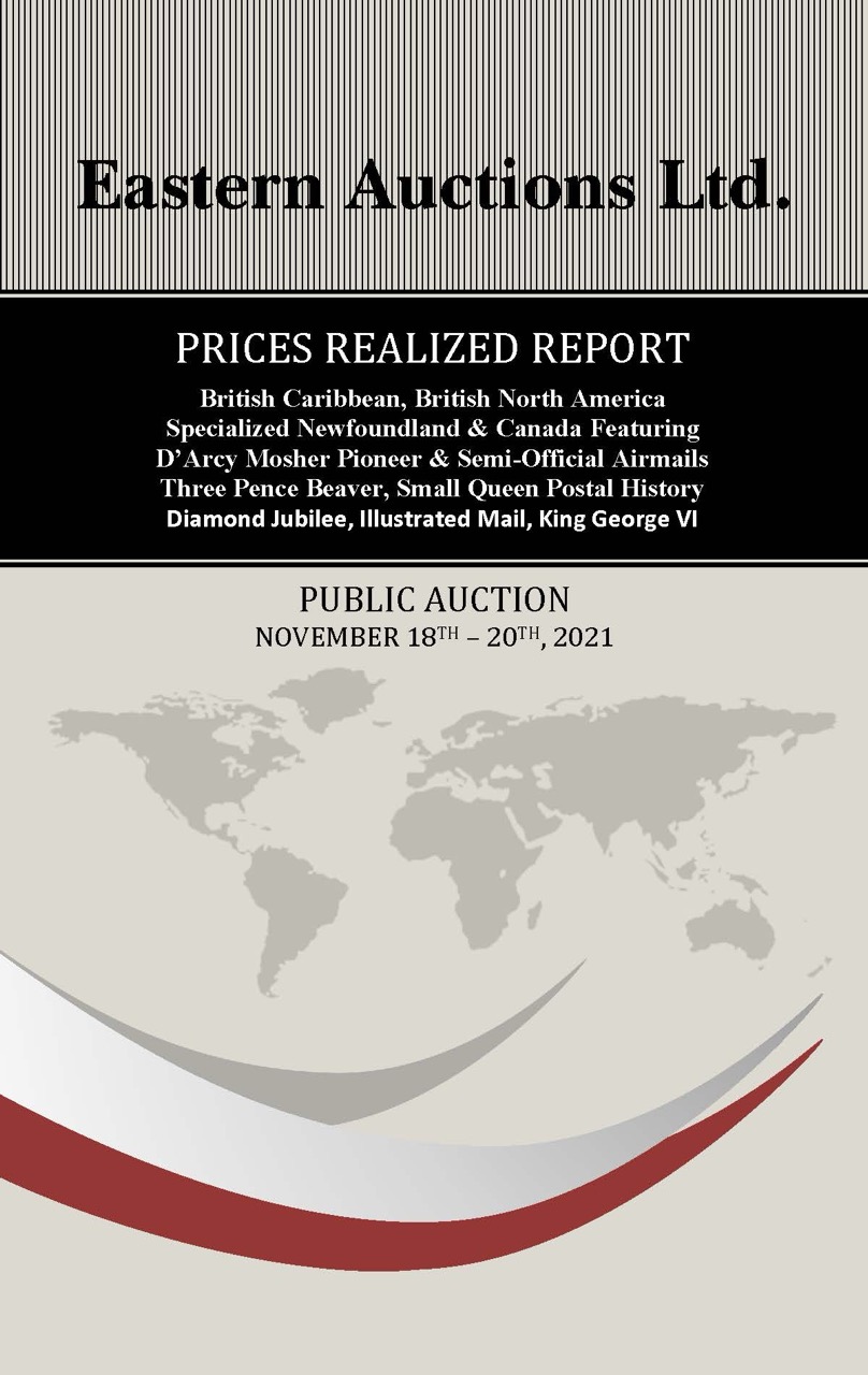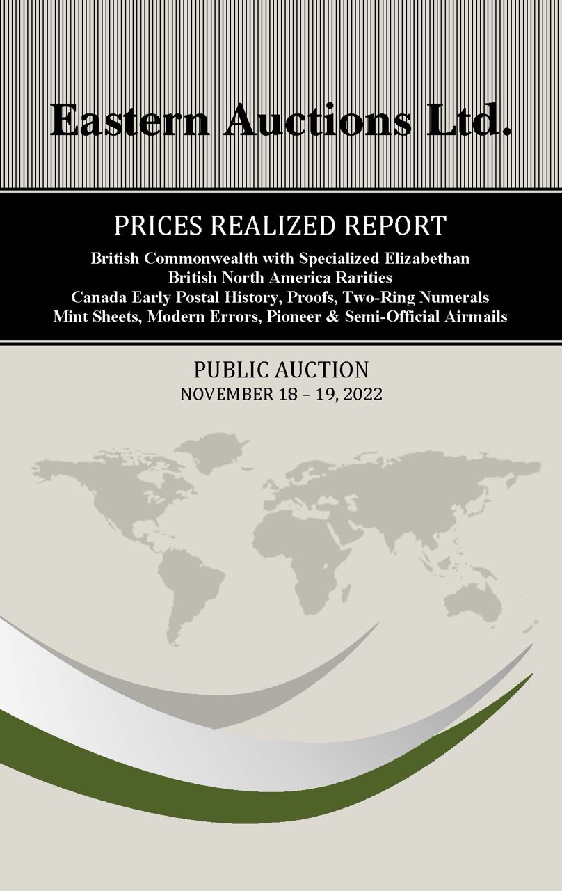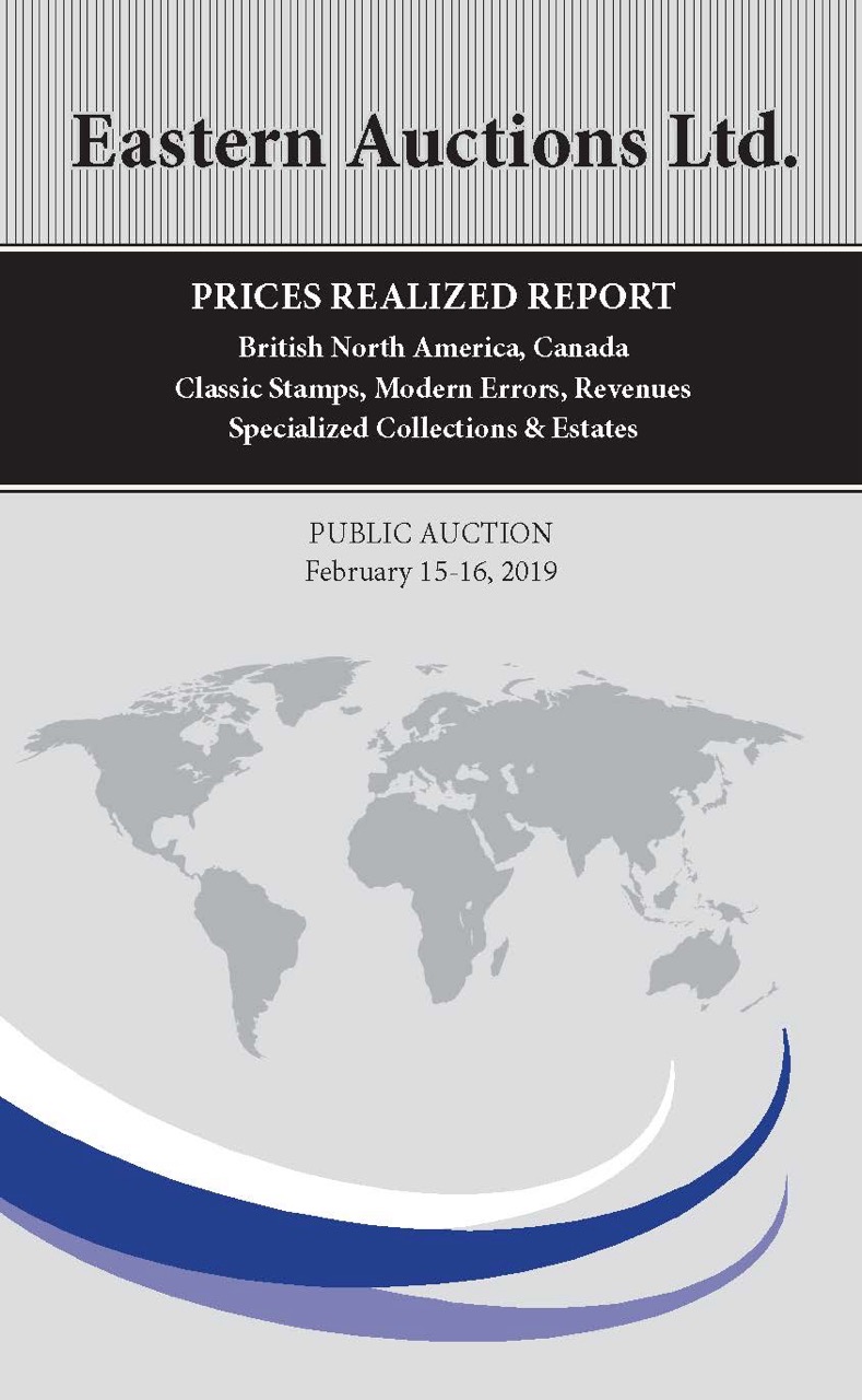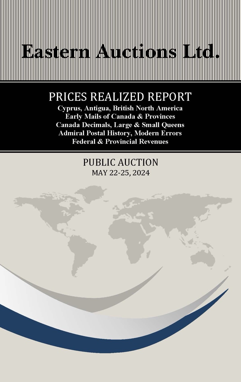 PRICES REALIZED REPORT Cyprus, Antigua, British North America Early Mails of Canada & Provinces Canada Decimals, Large & Small Queens Admiral Postal History, Modern Errors Federal & Provincial Revenues