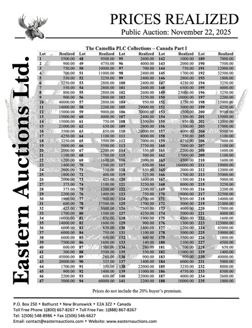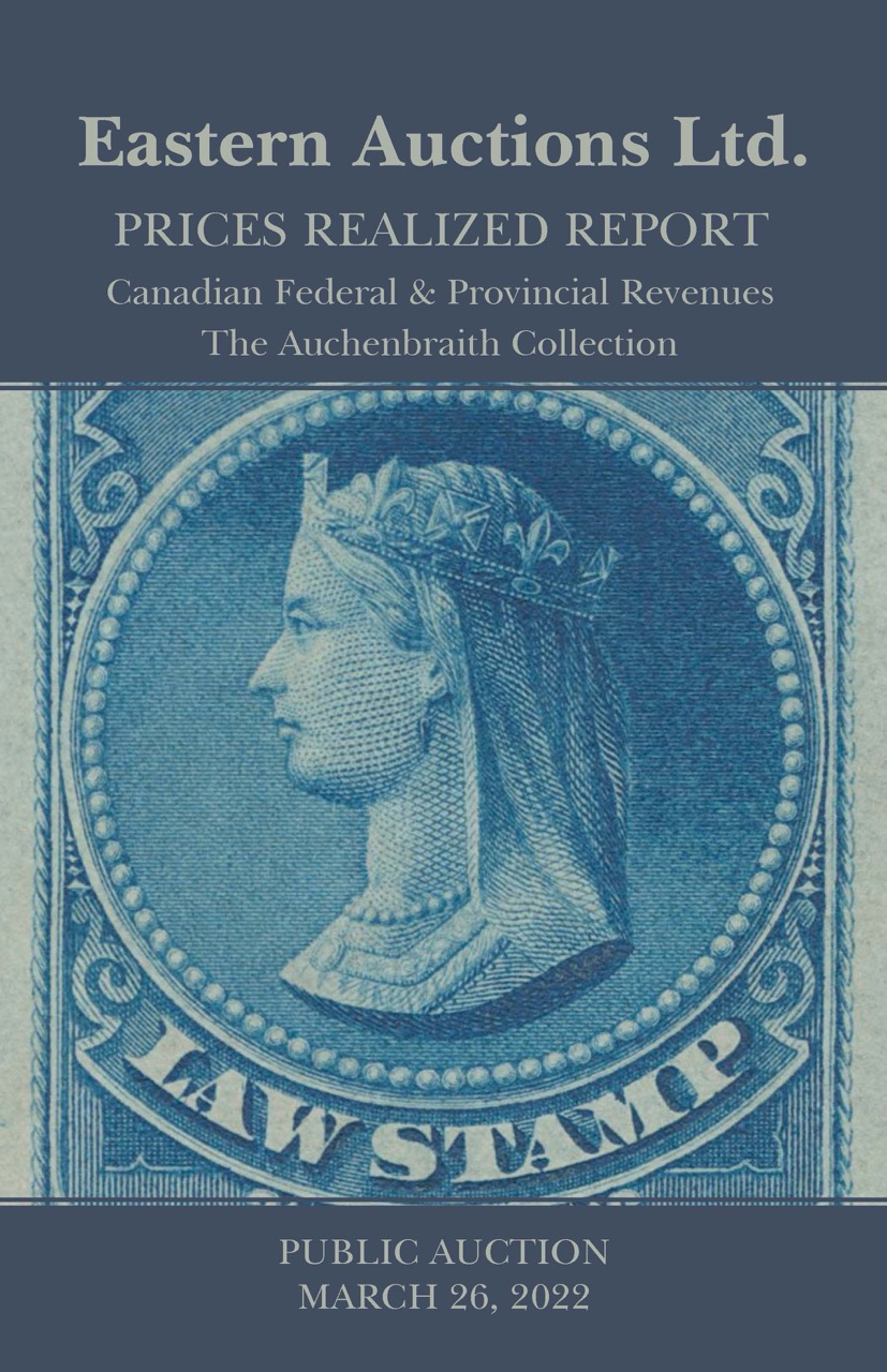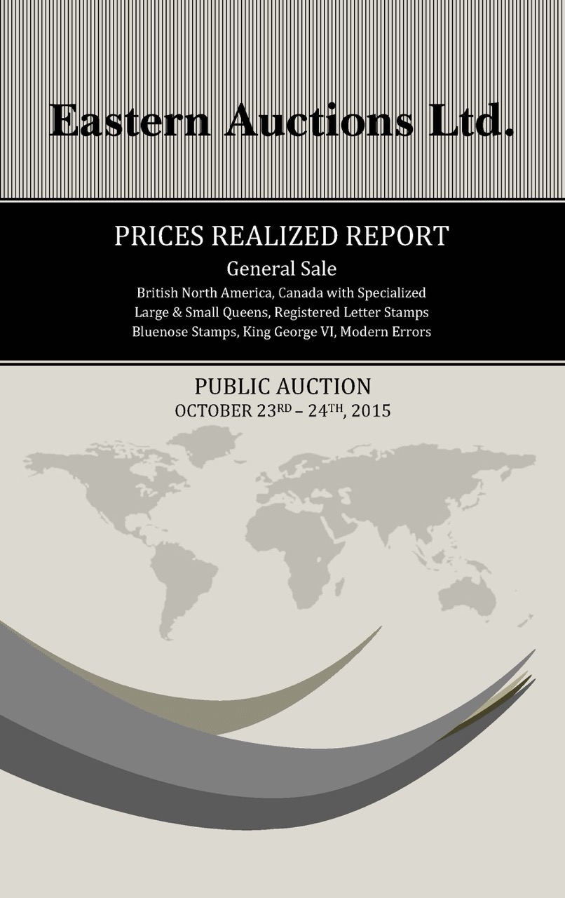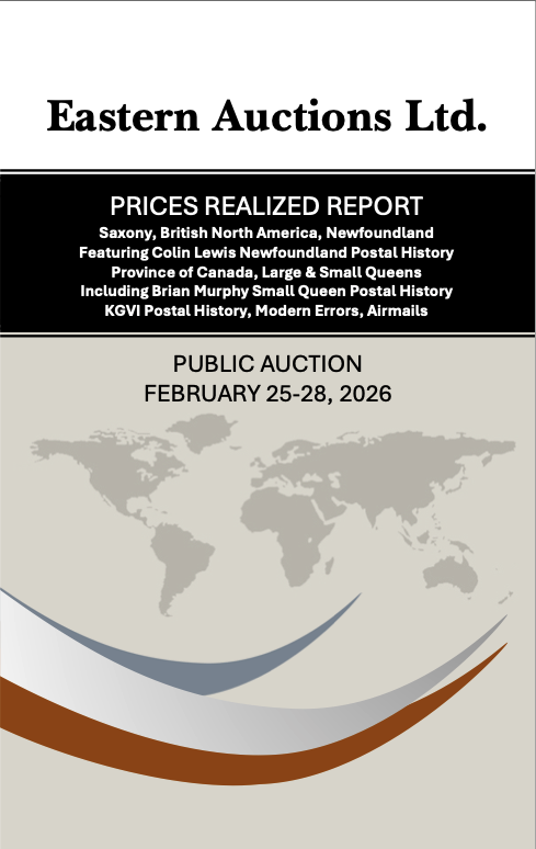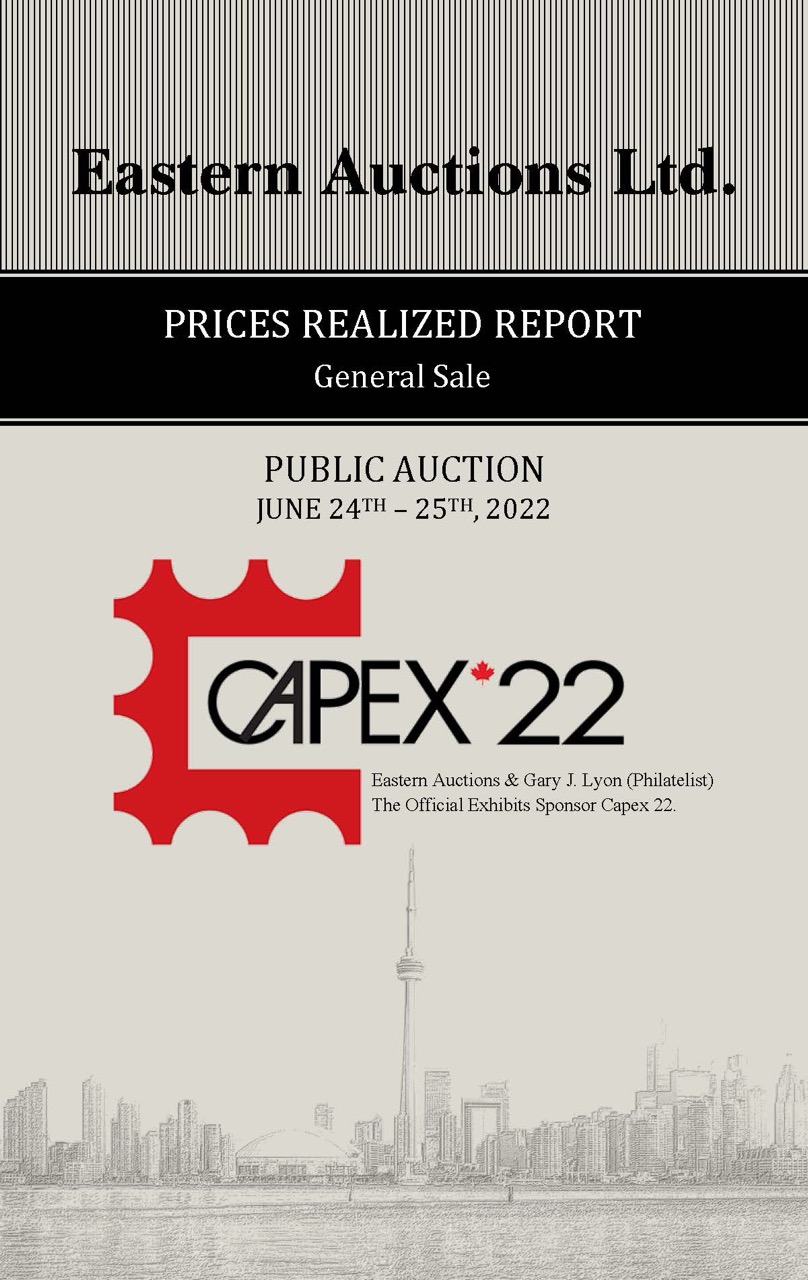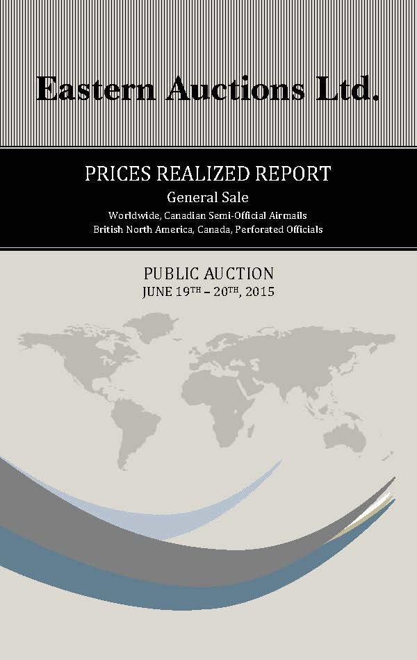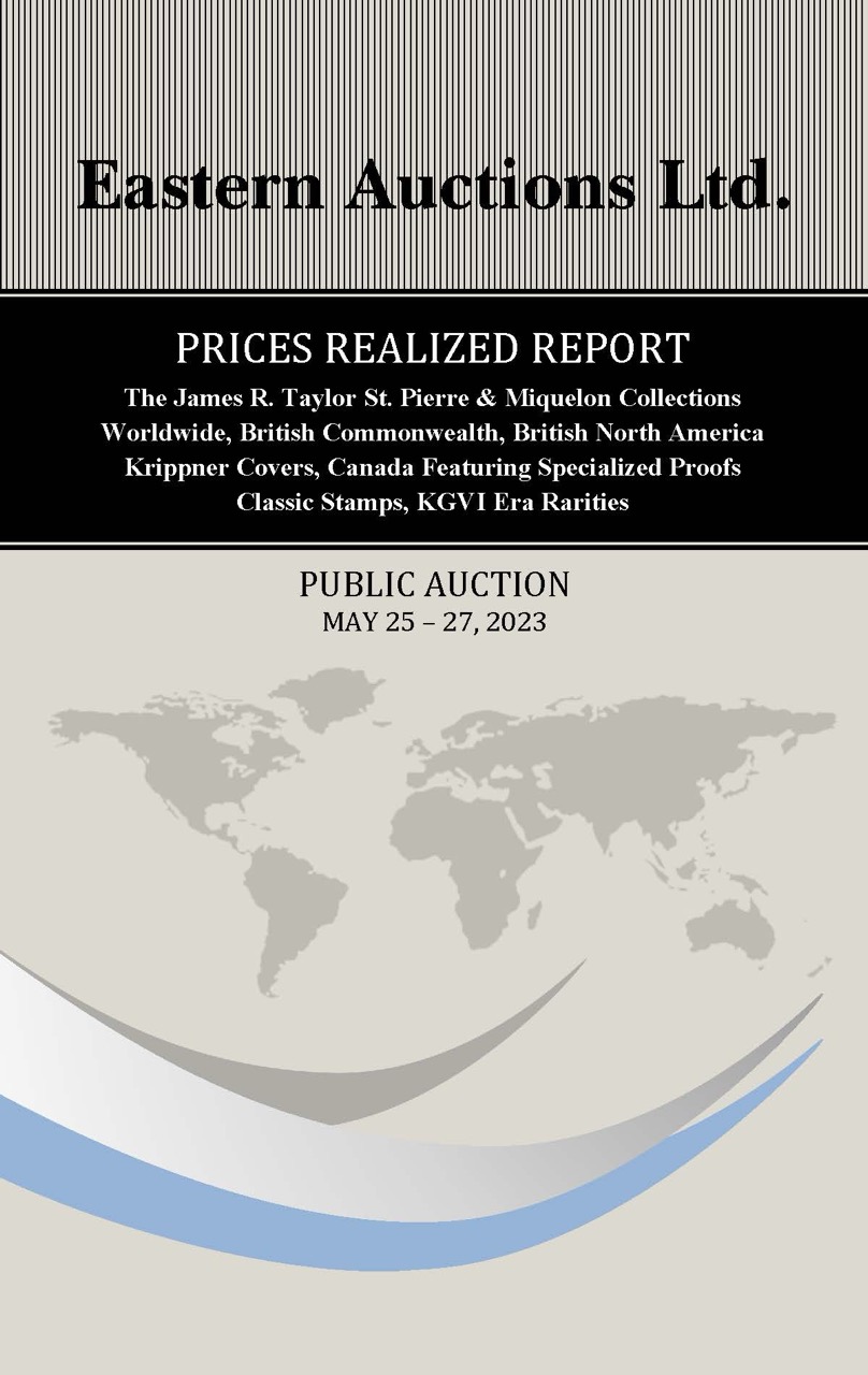 PRICES REALIZED REPORT Cyprus, Antigua, British North America Early Mails of Canada & Provinces Canada Decimals, Large & Small Queens Admiral Postal History, Modern Errors Federal & Provincial Revenues