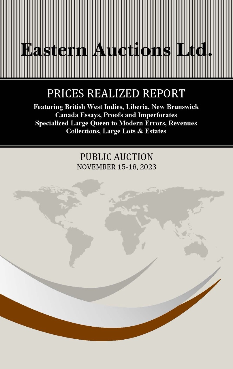 PRICES REALIZED REPORT Featuring British West Indies, Liberia, New Brunswick Canada Essays, Proofs and Imperforates Specialized Large Queen to Modern Errors, Revenues Collections, Large Lots & Estates - NOVEMBER 15-18, 2023